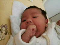 上面这句话是刚才忽然从脑子里面冒出来的,我就随手写下了。其实也没有什么特别的意思,只是觉得,刚刚2个月的小宝宝,已经是个有性格有脾气的小朋友了,许多时候,心情不好或者觉得压力大的时候,想起她甜甜的微笑,自己内心也就会荡漾起一种很自然的幸福和满足感。