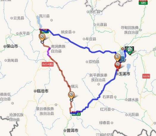 昆明-南华-大理-巍山-南涧-景东-镇沅-墨江-玉溪-昆明。