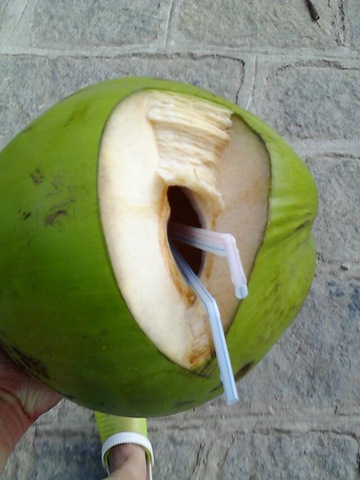 这货是椰子,三亚期间景区的主要水源补充品,好喝,就是贵,以前3块一个,现在10块,还贼重。