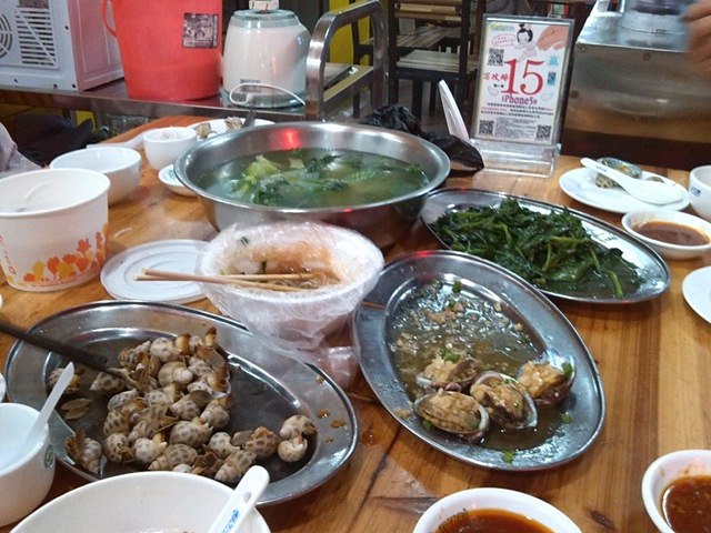 每天晚上都是到市场上买来海鲜和蔬菜,然后找店子加工,然后老婆都要再买抱罗粉、酸粉、清补凉。其实我觉得清补凉比较好吃。