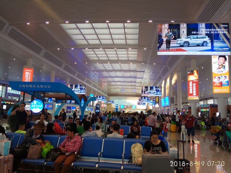 昆明南站,高铁站。建设中曾经来看过,投入使用后还是第一次来。早上7:00,昆明南站中已经是人声鼎沸。萝莉第二次乘高铁旅行,我则是第一次。