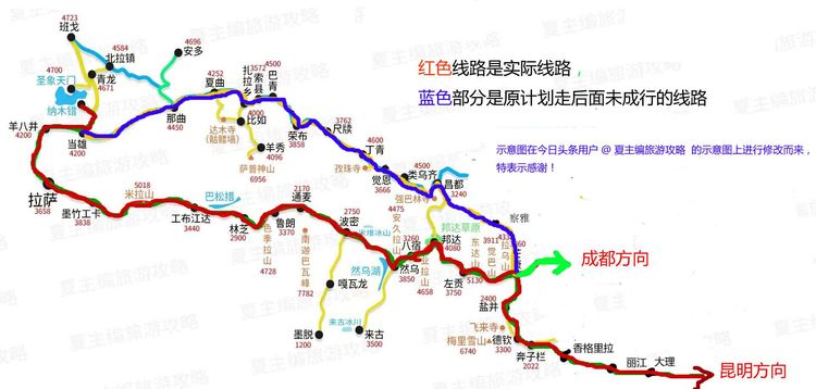 这个是本次西藏自驾游的基本线路,红色部分是实际线路。