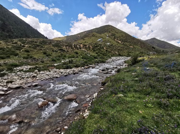 翻过觉巴山,前往东达山的路边,遇到一条景色极好的河流,大家纷纷停车休息,或戏水,或野餐,有房车、床车直接安营扎寨。