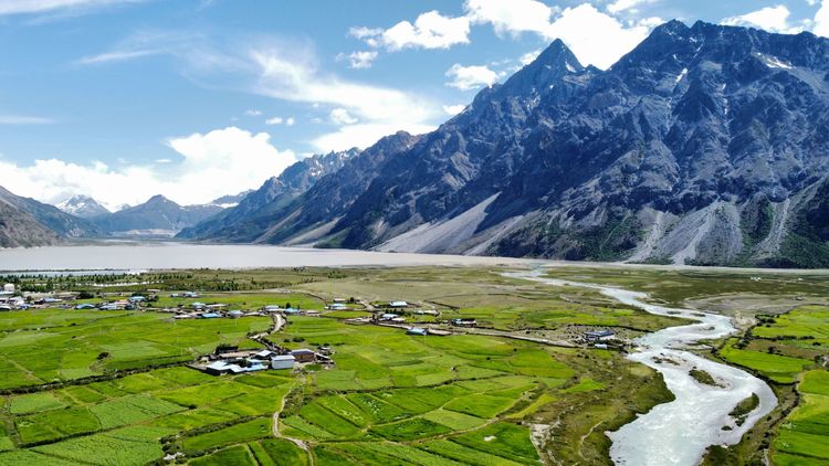 小飞机起飞,拍到了然乌湖、雪山、田园、村庄、江水,这才是多姿多彩的西藏。