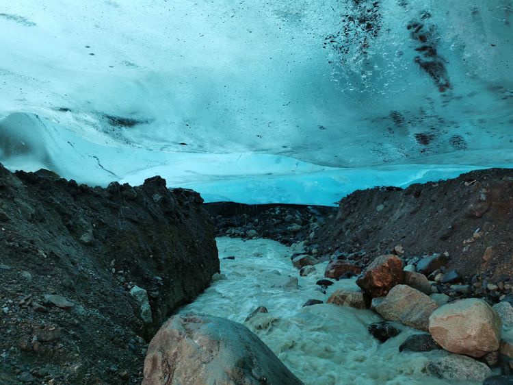 经过皮卡车、摩托车的颠簸,我们终于到了冰川下,一个当地小女孩守在这里,带我们进入冰洞,亲手感触蓝冰的世界。小女孩12岁,正是小升初的时候,因为懂汉语,假期在这里勤工俭学,承担介绍与监督的责任。