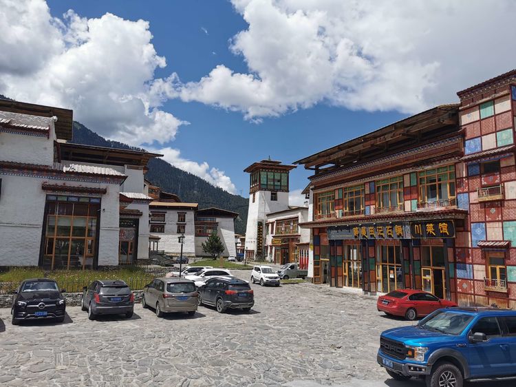 途经鲁朗小镇。鲁朗是林芝的一个重要景点,号称有中国的瑞士之称,主要以雪山、林地、草原、田园风光著称。同时是广东省定向帮扶项目地,这几年打造了一大批旅游基础设施。鲁朗国际旅游小镇是其中之一。只是感觉人气还没有起来,当地最著名的是石锅鸡。小镇的比国道边的贵。