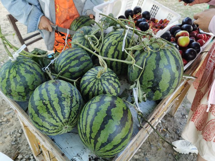 穿过色季拉山,我们前往雅鲁藏布大峡谷中的索松村,路上途径米瑞。林芝是西藏的江南,米瑞则是林芝的水果蔬菜之乡,一路上都是果园和菜园,我们在路边买了西瓜和李子,味道极好,价格略高于昆明。后面返回时候 ,又买了一个西瓜一路拉回昆明。。。