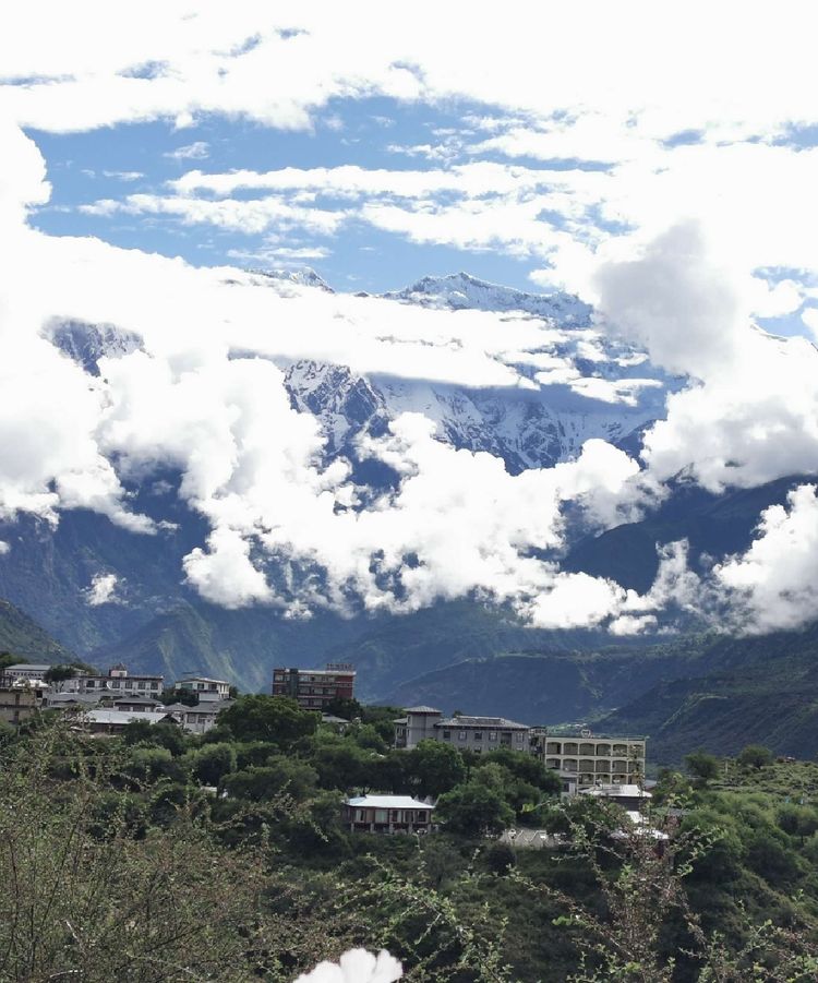 头天爬冰川太累,到达林芝市波密县时候已经是夜里10点多,好在波密海拔只有2700米,好好睡了个觉。早上一睁眼,就看见了窗外的雪山,太赞了。波密的酒店服务质量比八宿好,天气环境也更接近云南。