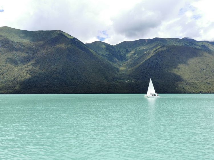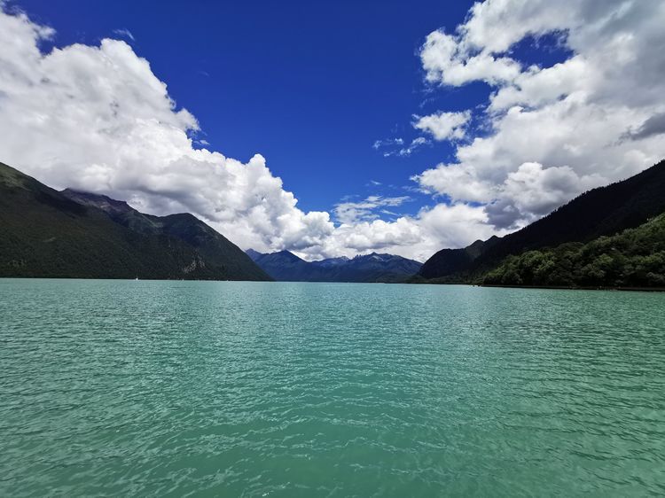 巴松措的湖水很蓝,有帆船经过,景色的确不错。