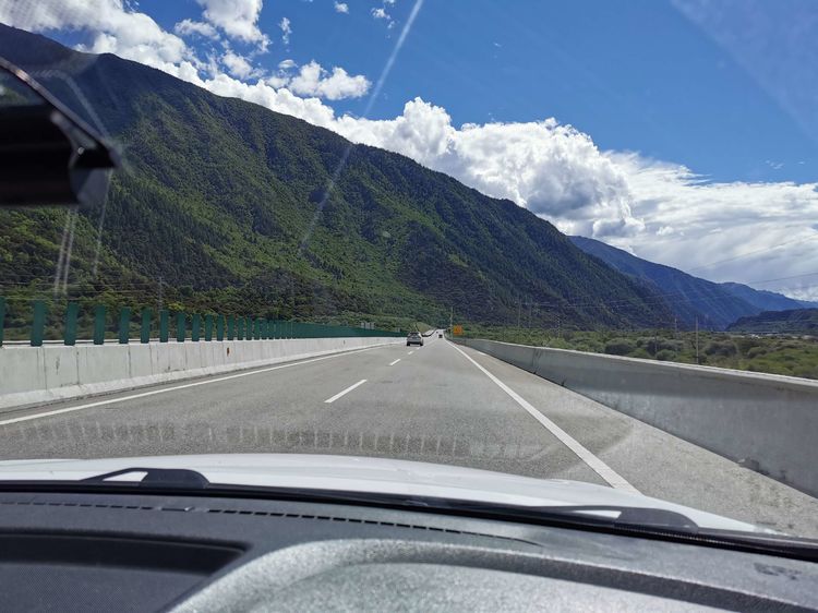 下午4点离开巴松措,前往拉萨。林芝到拉萨的林拉公路是高速公路,全程免费,路边是碧蓝色的河水或湖水,被称为中国最美的高速之一,特别是免费这点,大赞。女司机终于也按耐不住,亲自上手体验了一下免费高速的感觉。