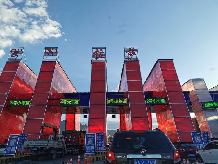 你以为过了隔界河就能进西藏了?错了,按照2022年7月22日西藏执行的政策,凡入藏旅客需要提前申报藏易通,并有48小时内核酸证明(所以及时在香格里拉做核酸是十分必要的)。这是西藏芒康盐井检查站外面等待核查的游客车辆。我们按照要求做好了各种准备,检查用了3分钟,就顺利通过临时检查点,然后到检查站免费做一个核酸,刷身份证后即可继续前进。
