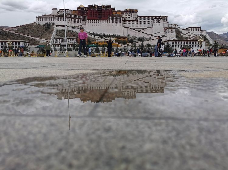 离开色拉寺,来到布达拉宫广场,各种拍照。据说,布达拉宫广场上的这摊水从来就没有干过。