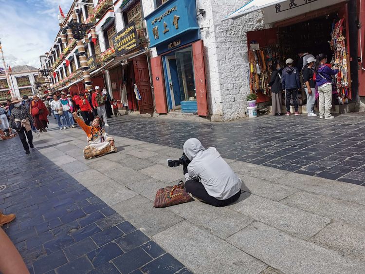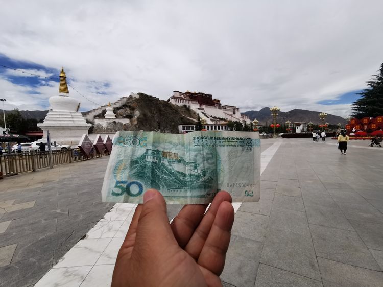 这是50元人民币上布达拉宫的拍摄角度,本来应该爬到药王山上面拍更好,但人太多 ,放弃了。孩子在广场上找当地的影楼拍了个民族服装写真,299的套餐,耗时耗力,但女人们喜欢啊,只有耐心候着。