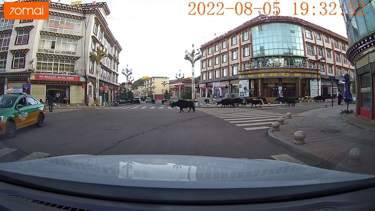 日落前到达芒康县城,正好赶上外出觅食的牦牛们下班,悠哉悠哉的走过街头。