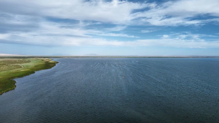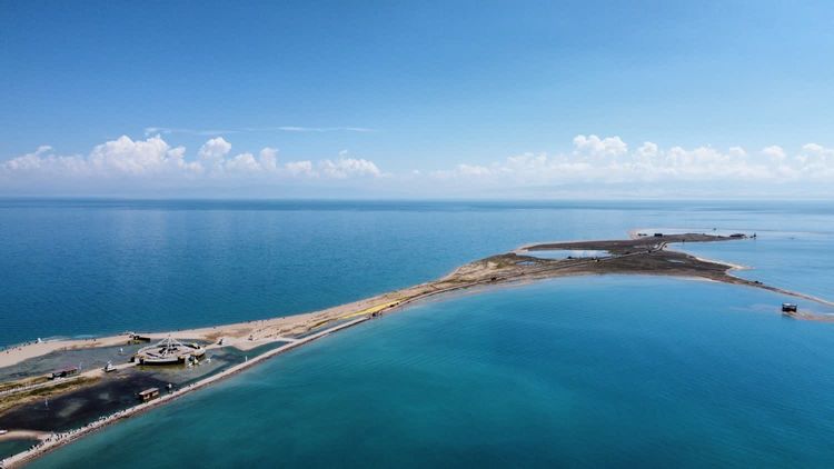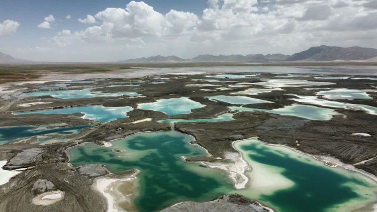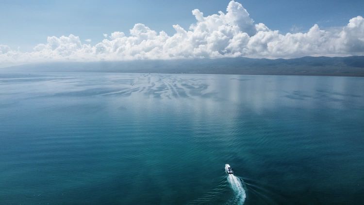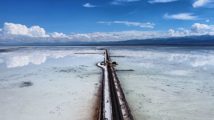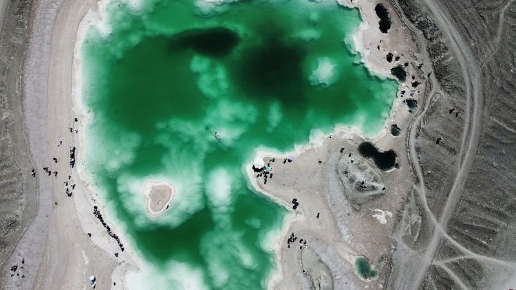 航拍茶卡盐湖,湖面上那些黑色的小点都是游客。