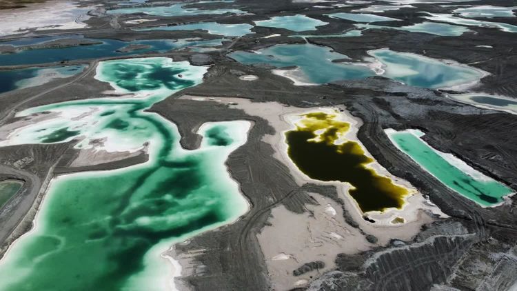 墨绿色和蓝色的湖最多,此外还有黄色的湖也不少。