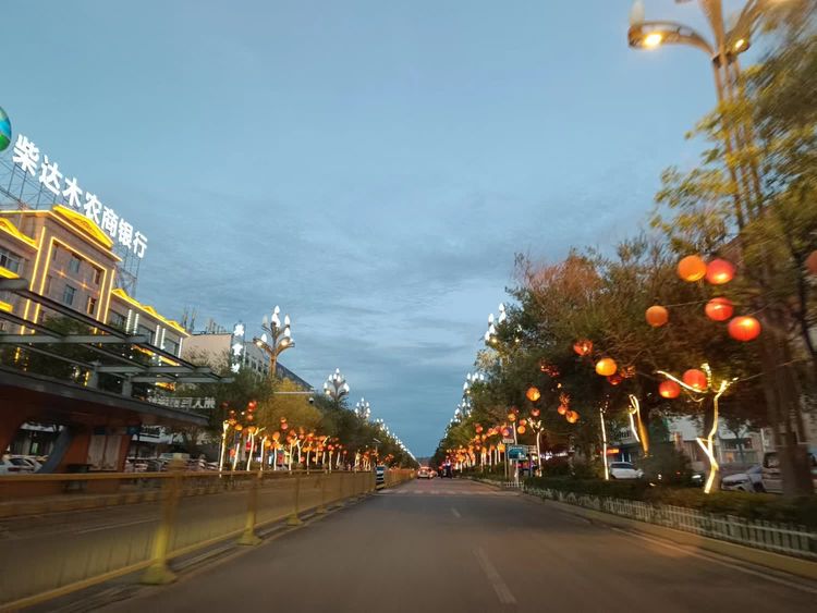 从情人湖一路向东,来到德令哈市区,算是在这茫茫戈壁当中比较热闹的城市,开始出现了CBD,而且街景还是非常漂亮的。