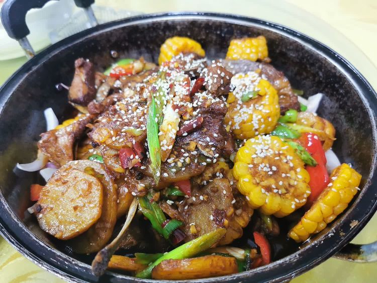 到达二郎剑景区旁的农家乐,自带餐厅的坑锅羊排很好吃,大赞。