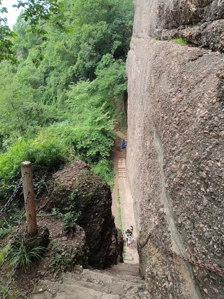 剑门关的景点非常多,也非常大,我们本想去一线天,但是当爬到这个地方以后,的确没有勇气再下去了,掉头返回关城。路上遇到一家人,问他们前面好走吗?然后男主人说,我七点就进来了,你说好走吗?果断放弃。