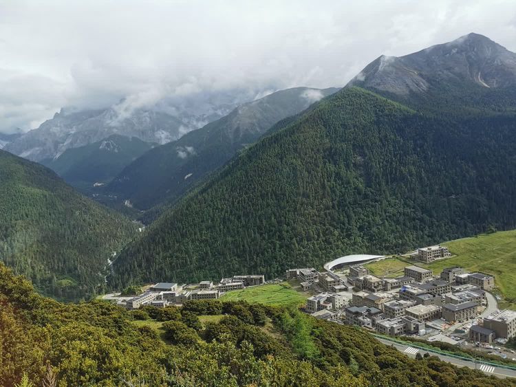 这就是传说中的亚丁村,海拔约4000米,景区就是沿着左边那条沟进去。