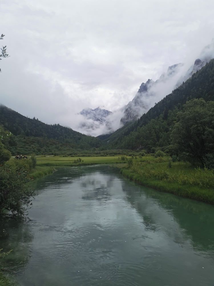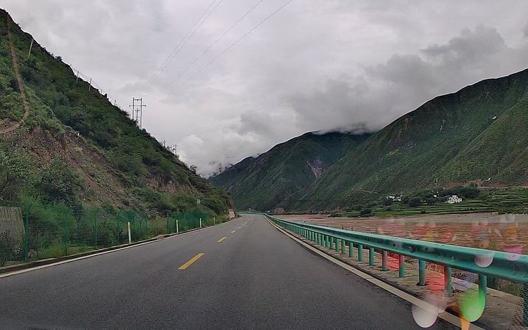 从香格里拉有3条路可以到稻城亚丁,第一条是香稻公路,220公里,需要6小时左右,第二条是经过古学、阿旺前往,约7小时。第三条是经过得荣县城-乡城县城,约8小时。第一条路比较险峻,雨季落石塌方比较多,我们主动放弃。第二条路到古学乡时,老乡告知前方因夜里下雨塌方,已经封闭。这下没得选了,只有走备选的第三条路,从215到得荣县城再转入549国道前往稻城亚丁。215得荣段基本都在金沙江边,一边是悬崖,一边是金沙江,大车多。549国道则是在小河谷中跑,路好车少,一派浓郁的江南风光。