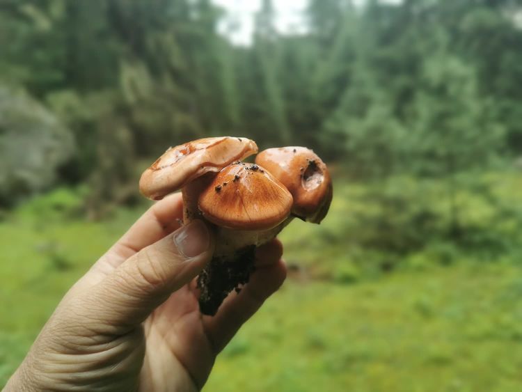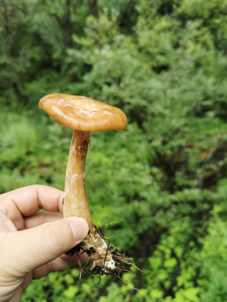 云南人到哪里都要捡菌,这是路边捡到的,也不知道是什么菌。