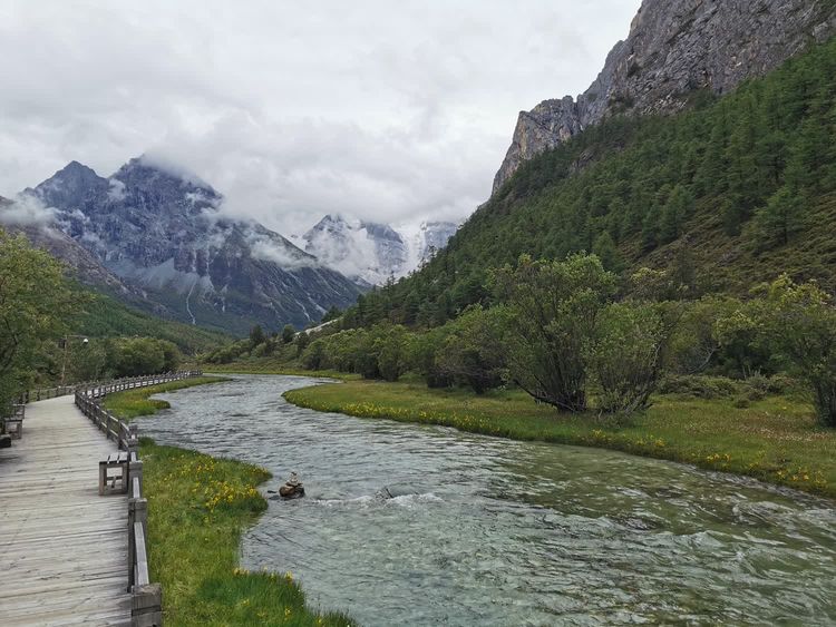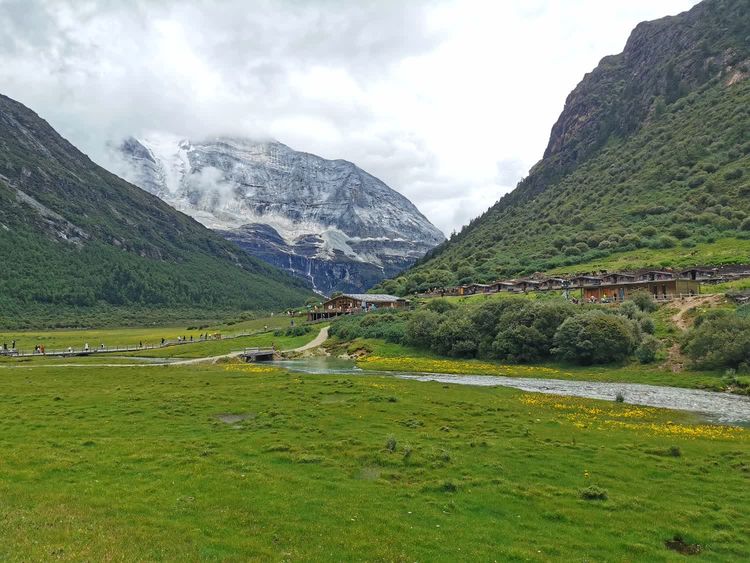 稻城亚丁名不虚传,风光还是非常不错的,这是冲古草甸,远处是雪山。