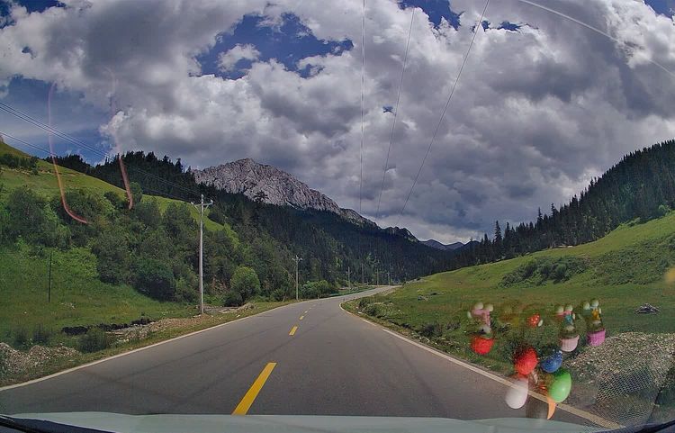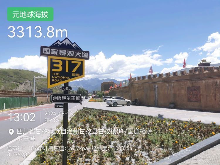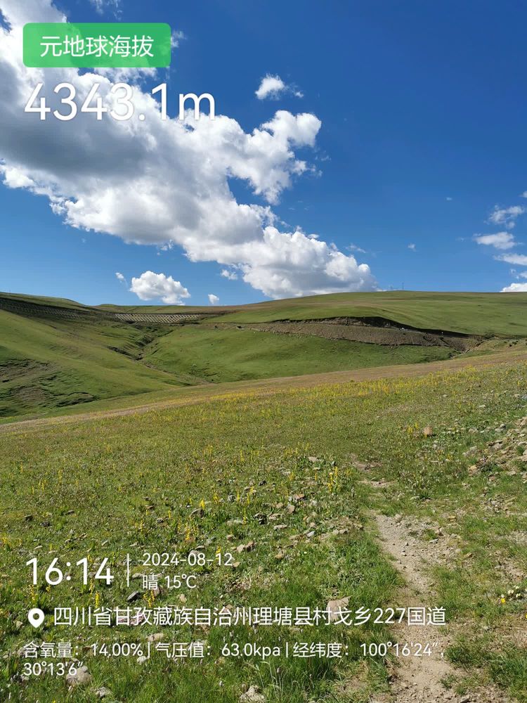 有几十公里路段,两旁都是石头,叫石河公园,非常有特色。路上的车不多,总之就是爬大山,下大坡,其中一座4500米的山上还下了雪、冰雹,中午到达理塘县城,加满油,继续前进。这里要经过一段318,车流一下增大。