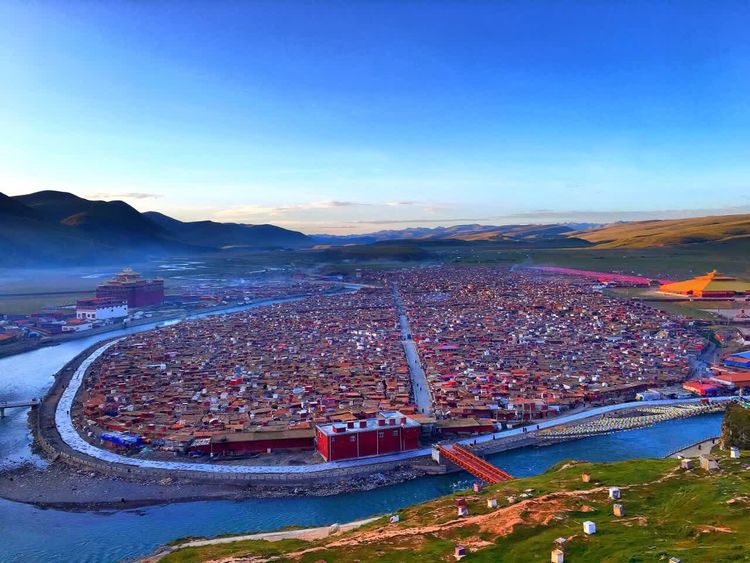 下午5点到达香格里拉市,入住酒店,远处就是著名的小布达拉宫,葛丹松赞林寺。