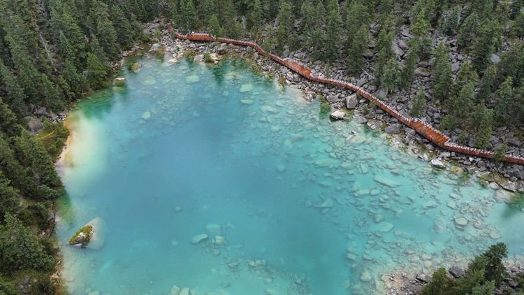 进山的步行道绝大部分是铁质栅栏铺在地上,手杖没有落脚处,所以,如果不去牛奶海,不需要购买手杖,否则不但用不上,还多一个累赘。