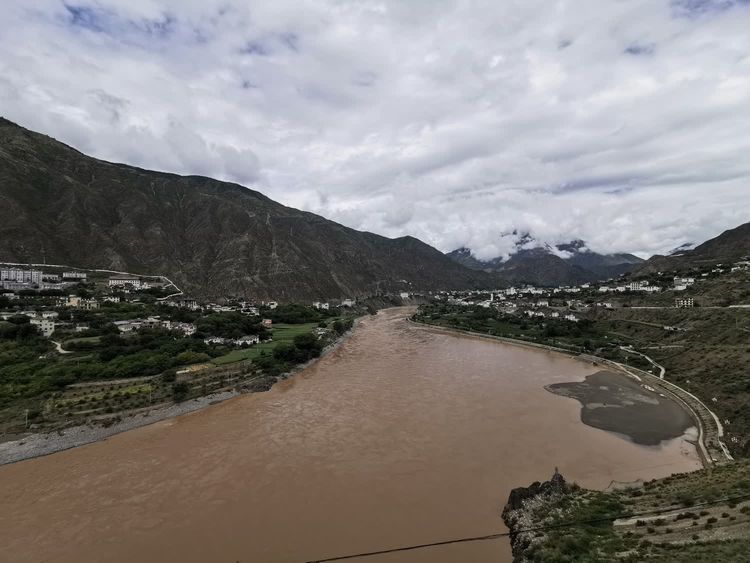 早上从香格里拉出发,香格里拉下了一夜的雨,不知道对路况有什么影响,忐忑中出发。一出门就开始下大雨,沿着214国道在大雨中前行,一直来到得荣县瓦卡镇,中间的是金沙江,左边是云南德钦县的奔子栏镇,右边是四川得荣县瓦卡镇。左边的214国道可直达西藏芒康县,右边的215国道直达巴塘,也可到西藏。